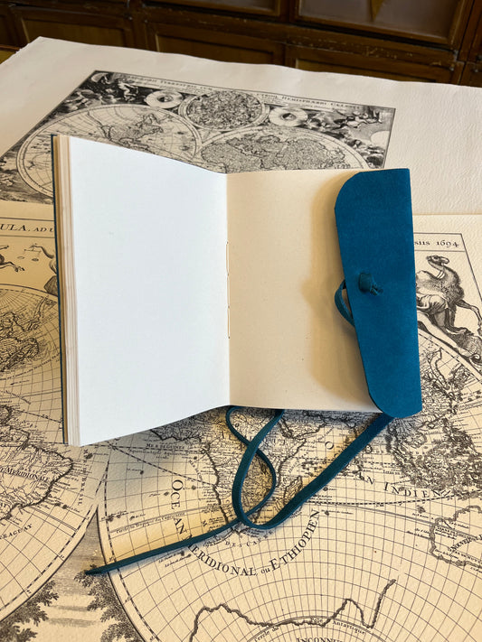 Quaderno 90 pagine bianche, copertina in pelle morbida scamosciata - 11 x 15 cm
