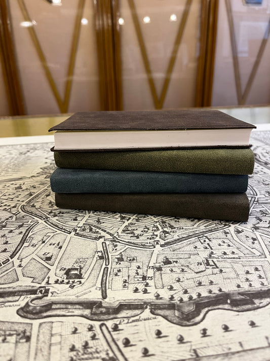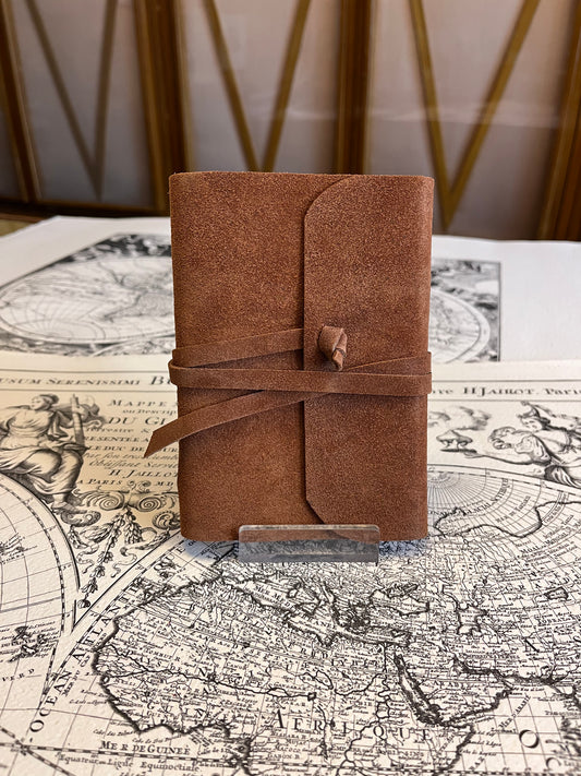 Quaderno 120 pagine bianche, copertina in pelle scamosciata - 14 x 21 cm
