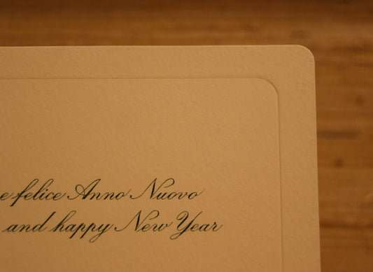 5 Biglietti auguri in corsivo angolo tondo con battuta, con buste - 13,5 x 8,5 cm