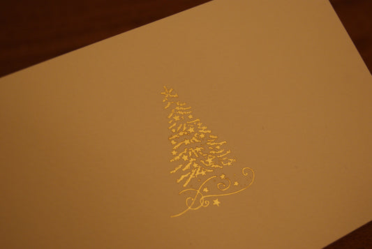 5 Biglietti auguri in rilievo oro doppi Albero di Natale, con buste - 15 x 9 cm