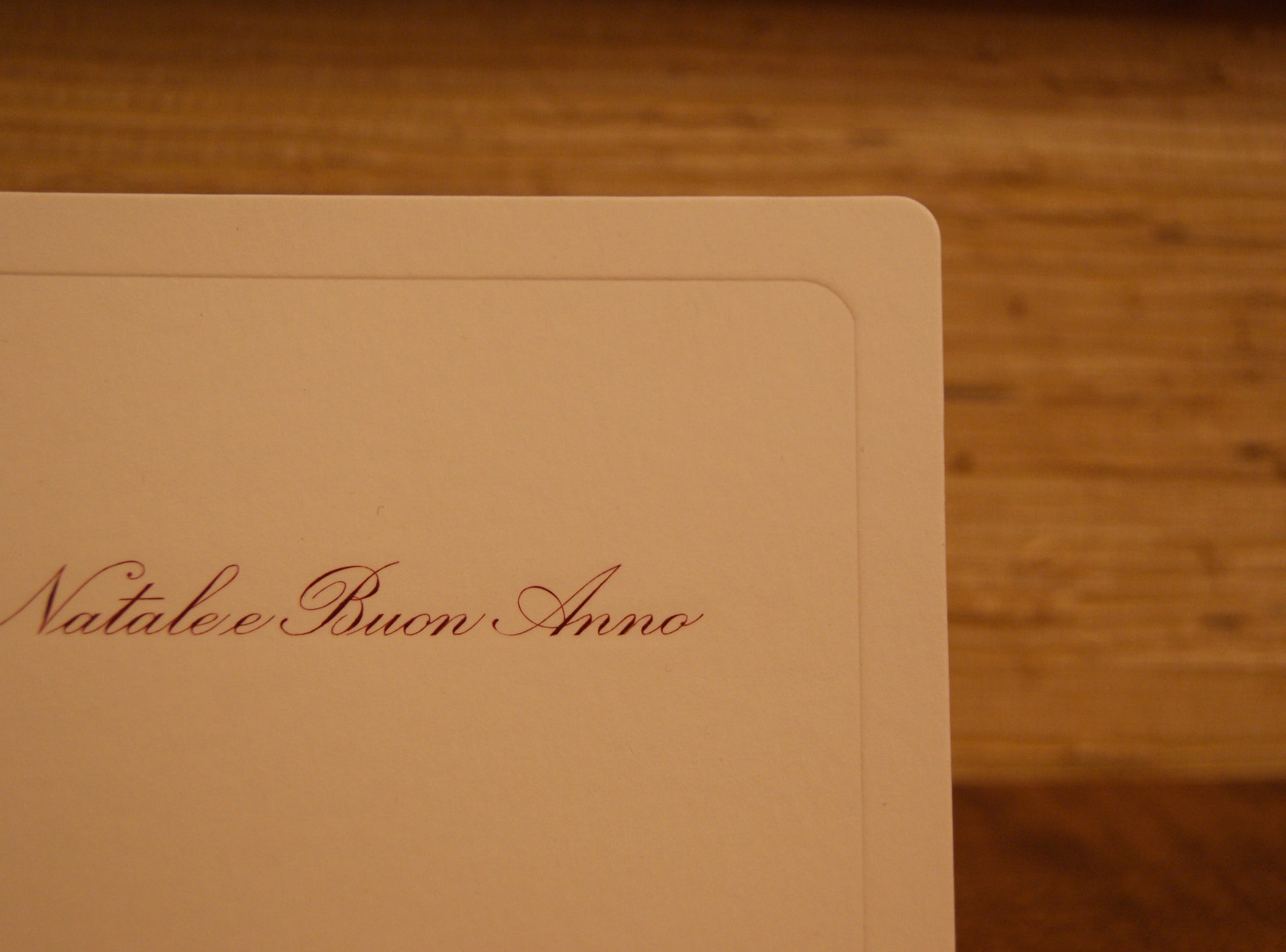 5 Biglietti auguri in corsivo angolo tondo con battuta, con buste - 14,5 x 9,5 cm