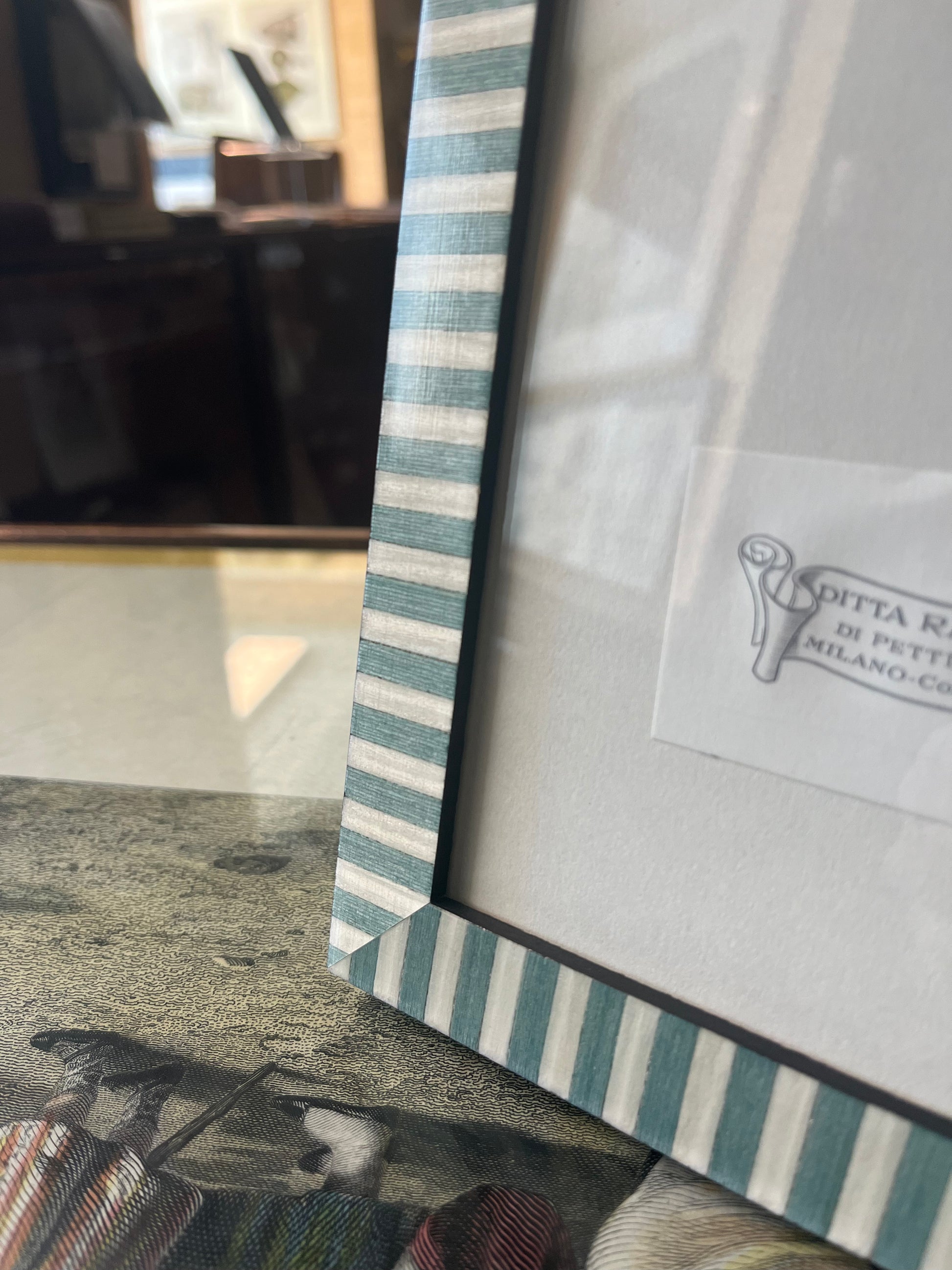 Cornice portafoto in legno con intarsio.