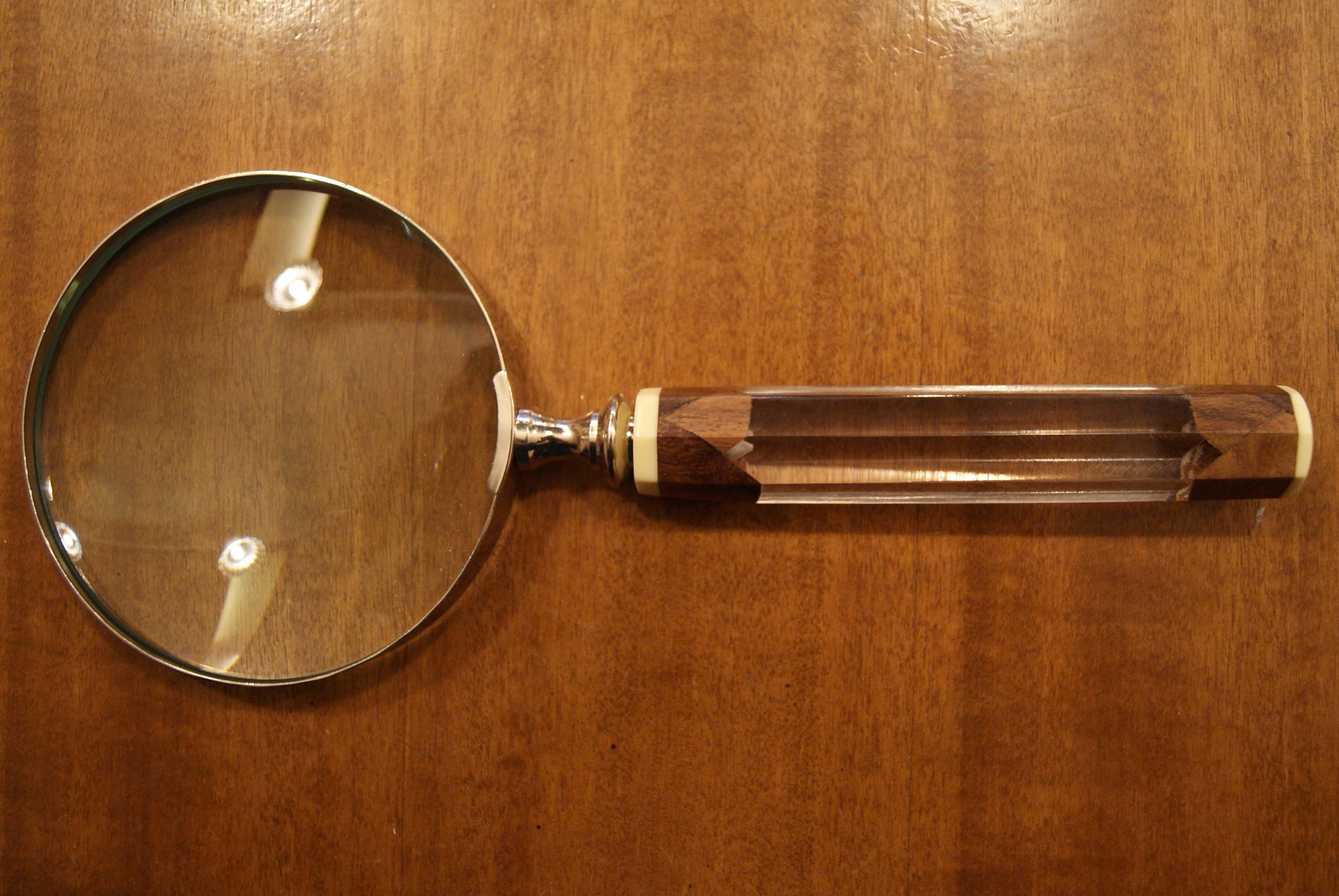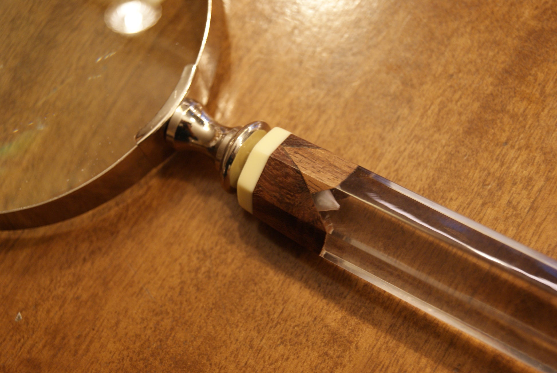Lente d'ingrandimento con manico lavorato, realizzata a mano.