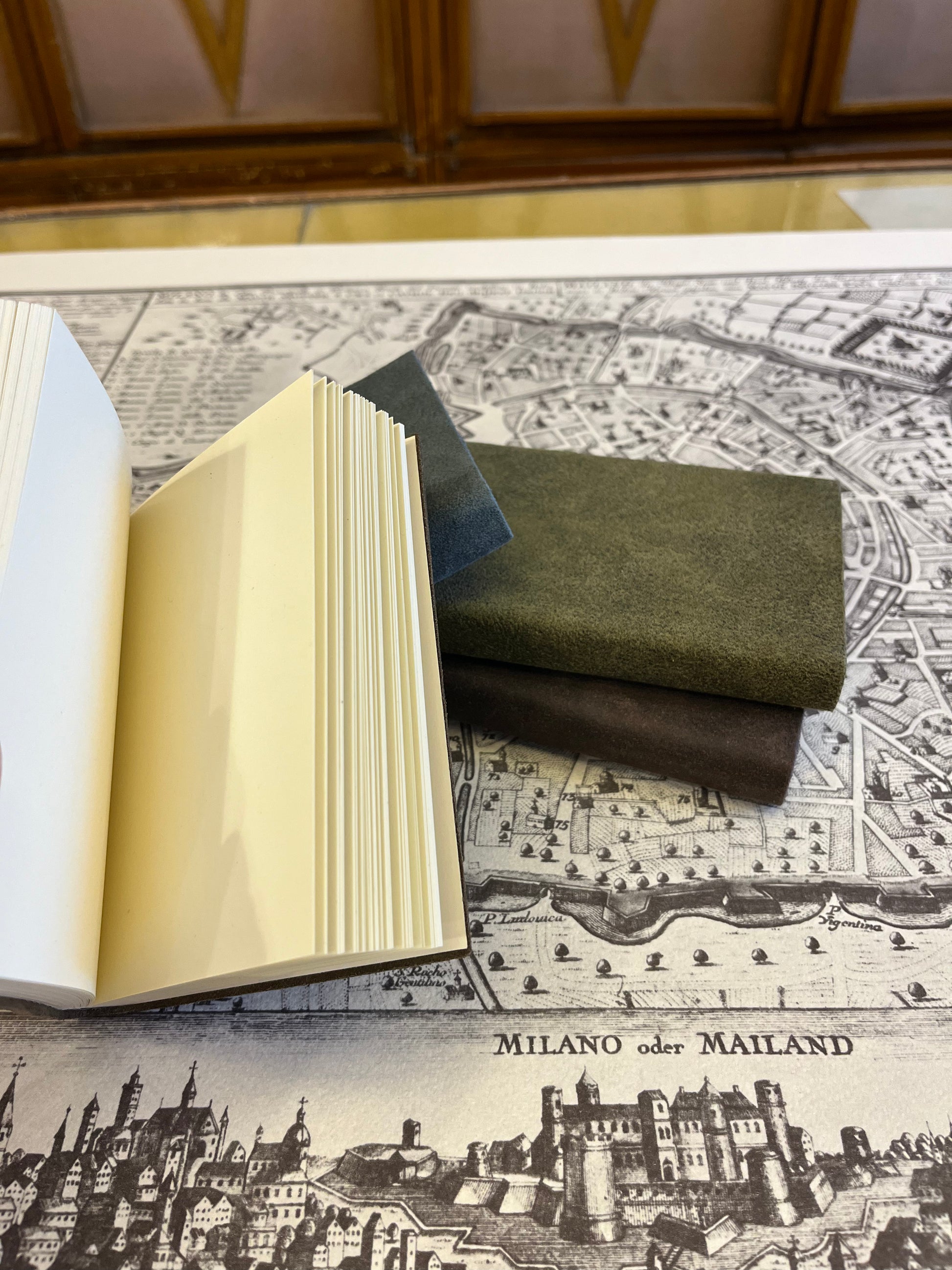 Copertina in pelle scamosciata, 120 pagine bianche. Realizzato interamente a mano, diversi colori.