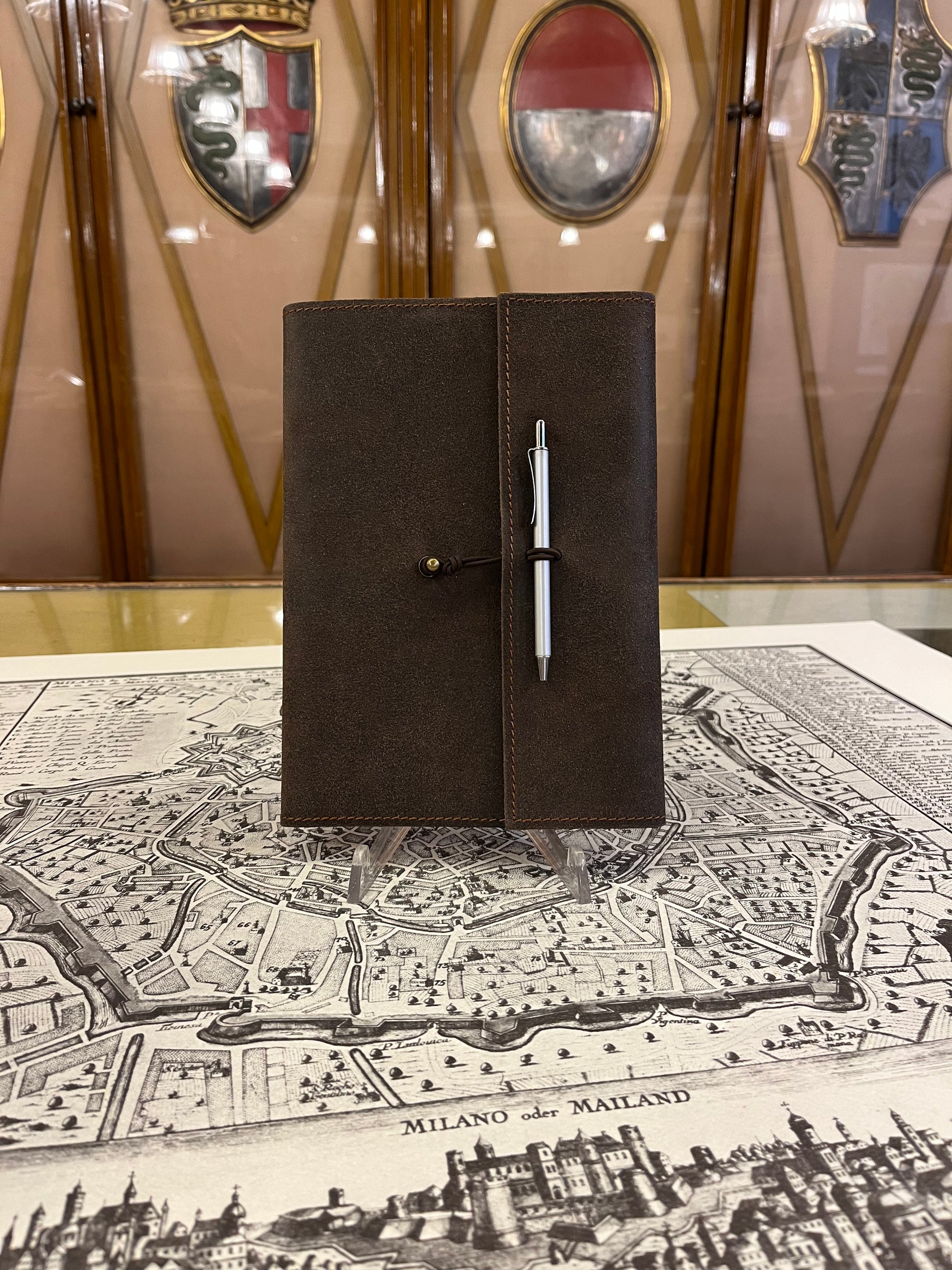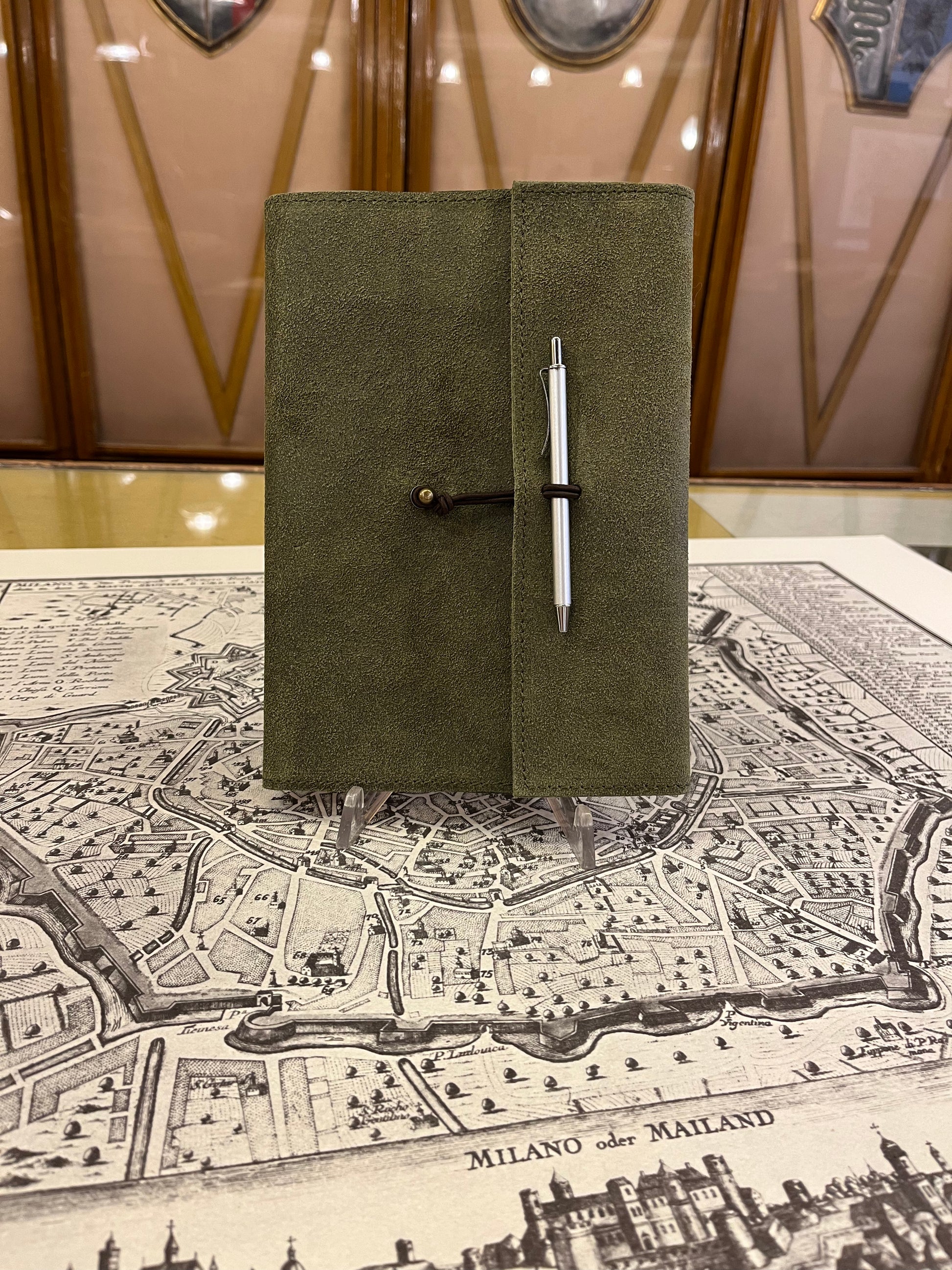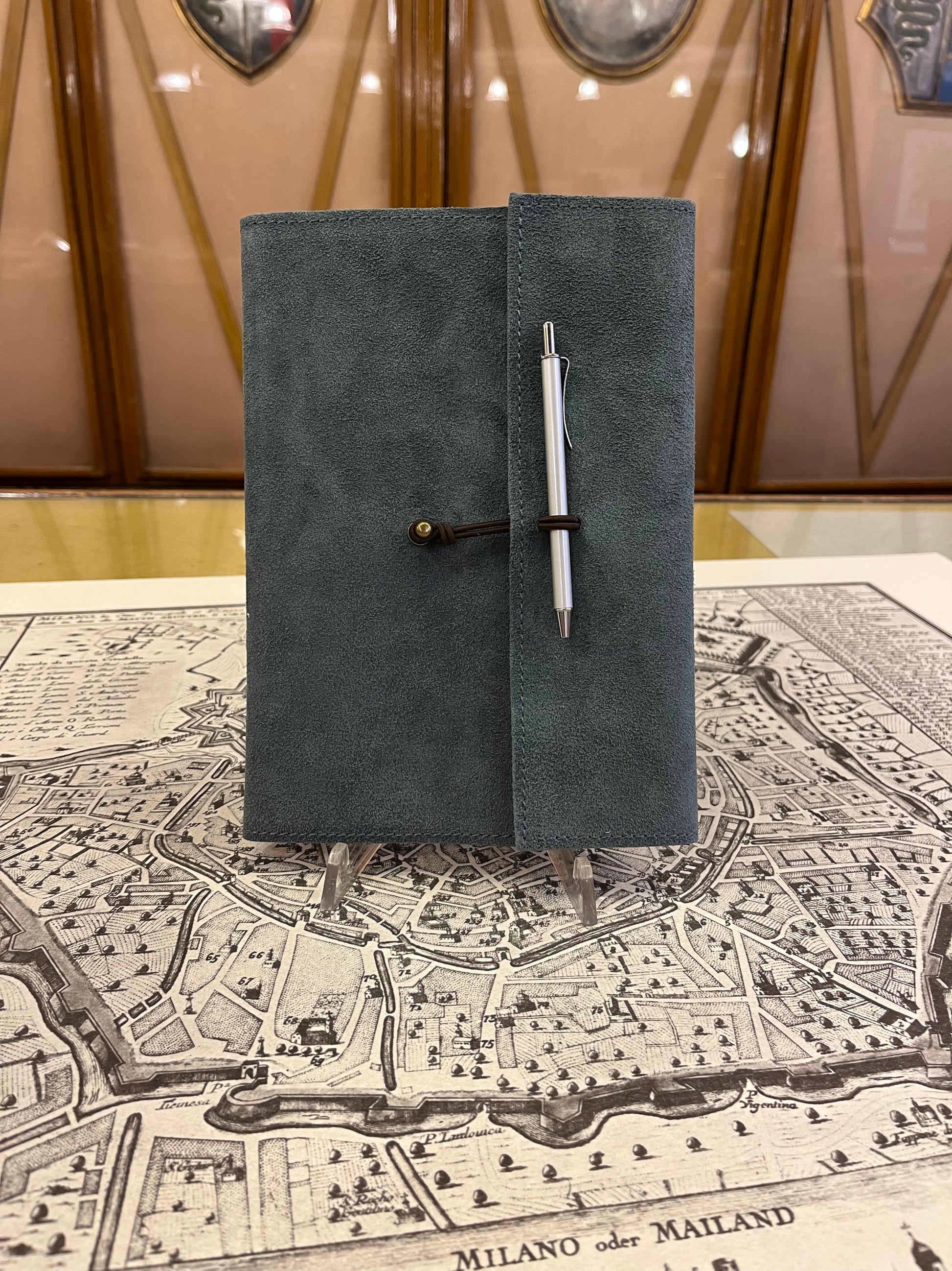 Quaderno 120 pagine bianche, copertina in pelle scamosciata con penna - 14 x 21 cm