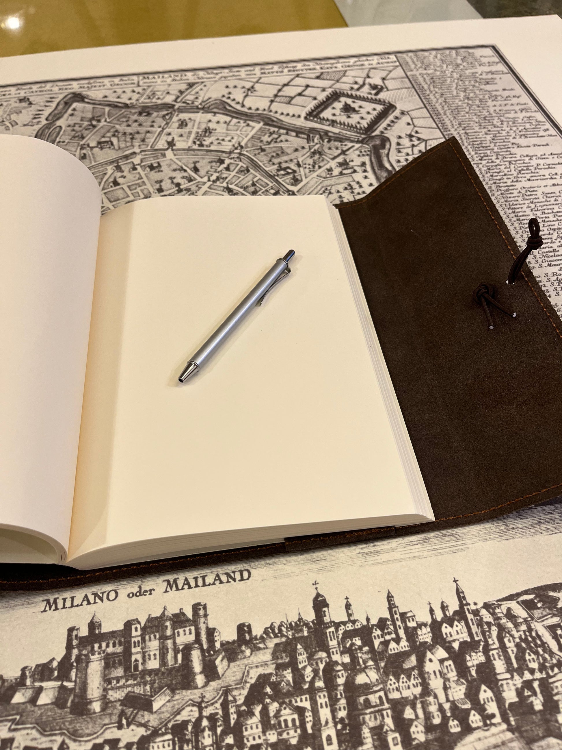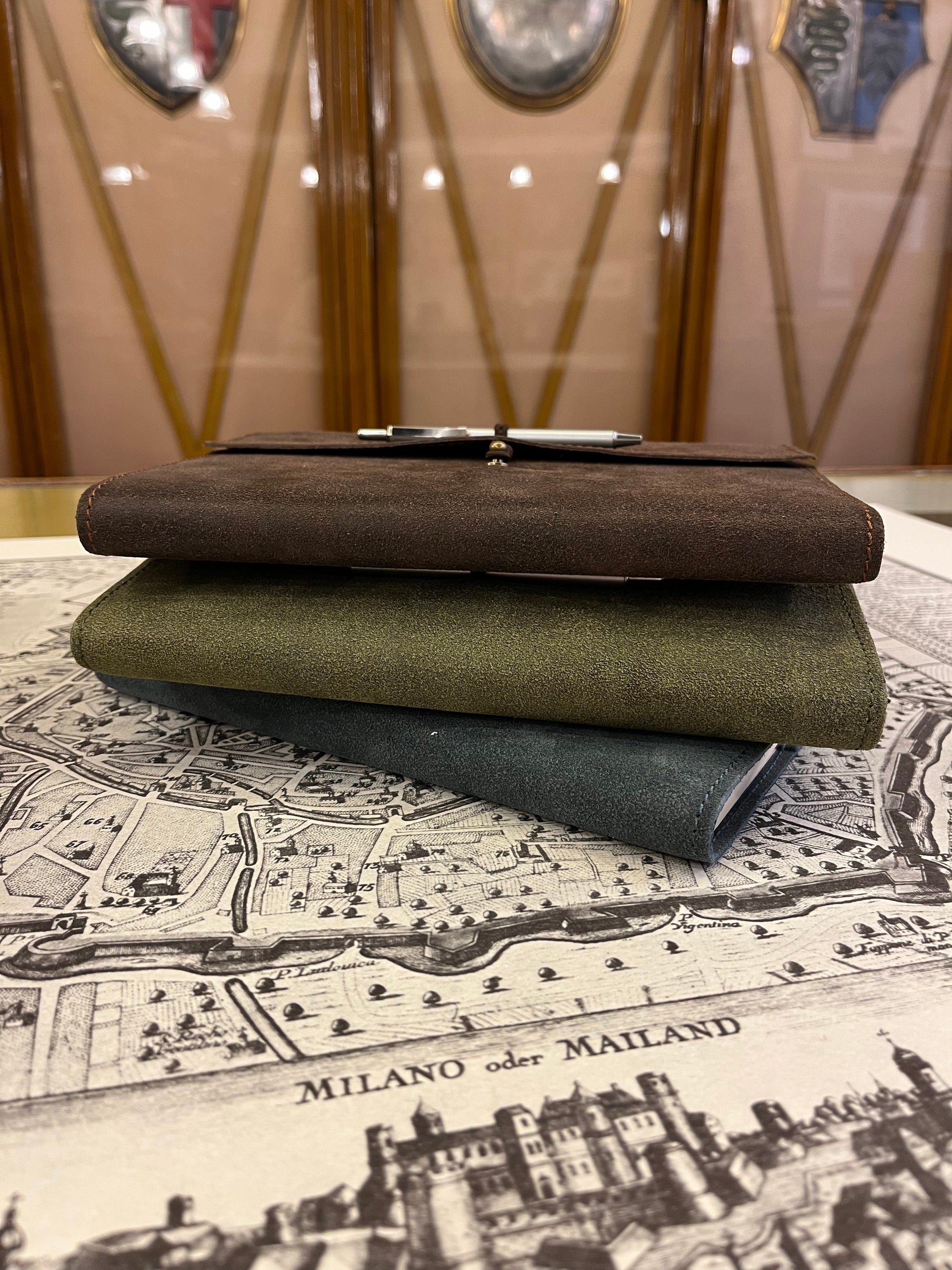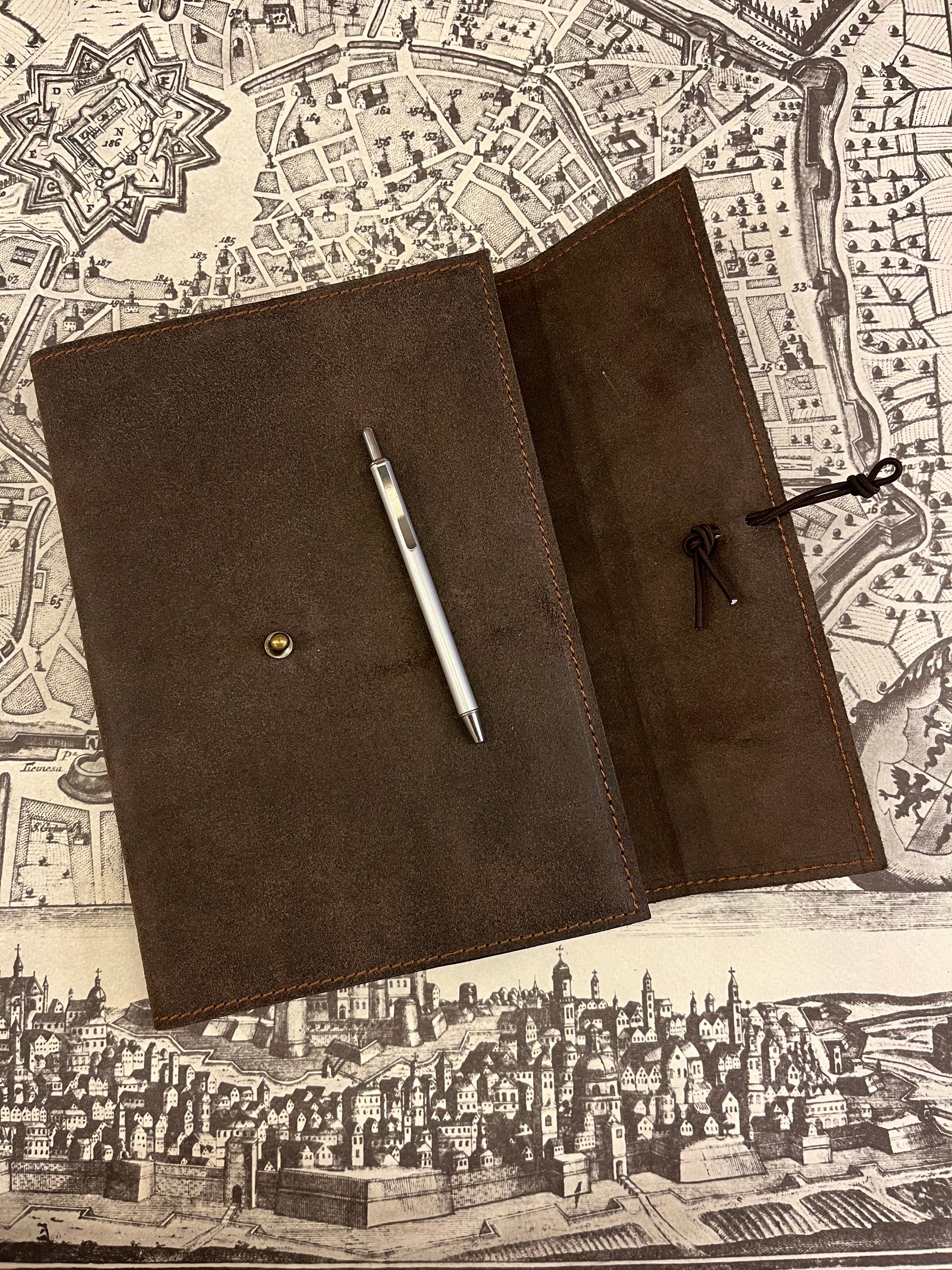 Copertina in pelle scamosciata con penna, 120 pagine bianche, interno estraibile. Realizzato interamente a mano, diversi colori.