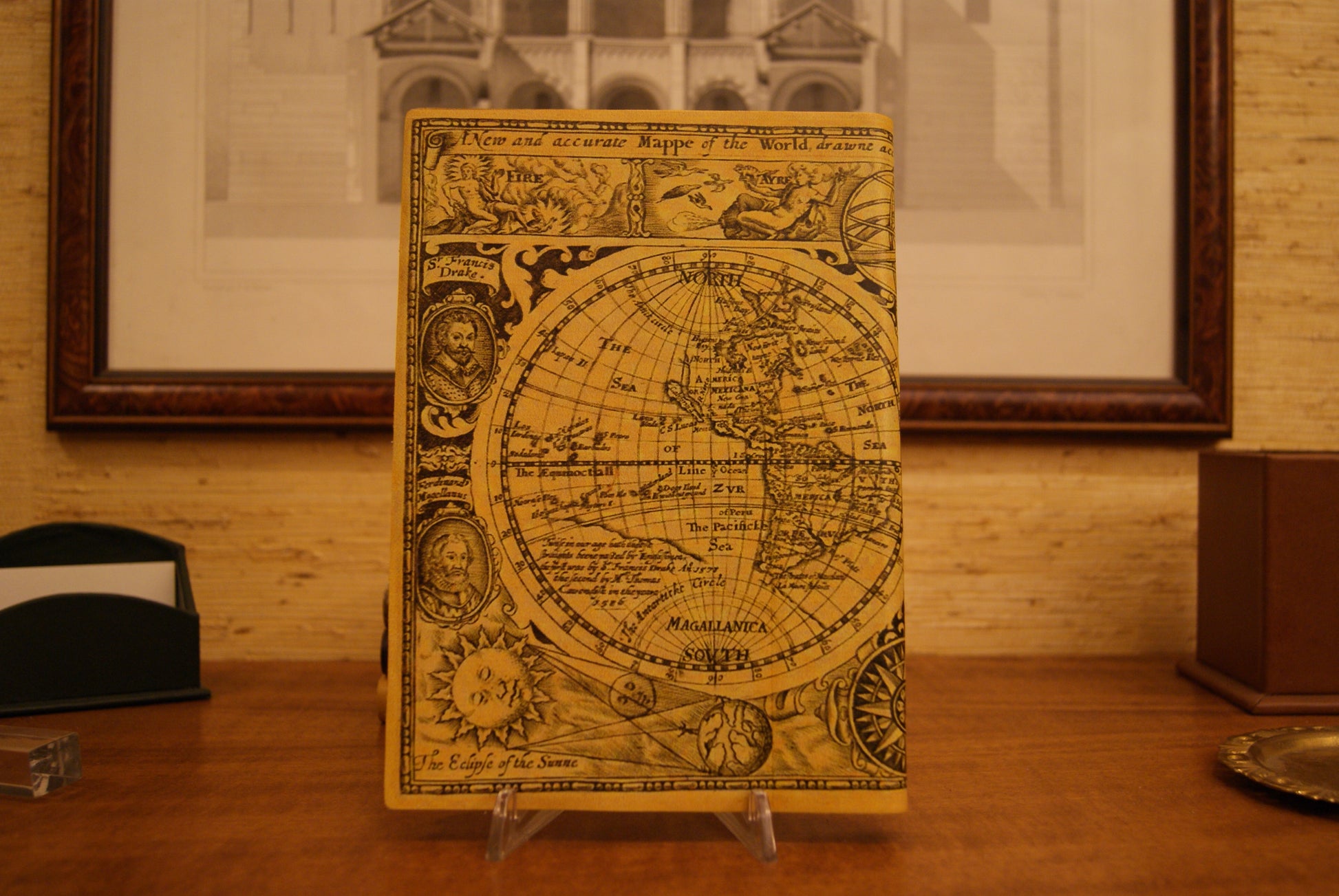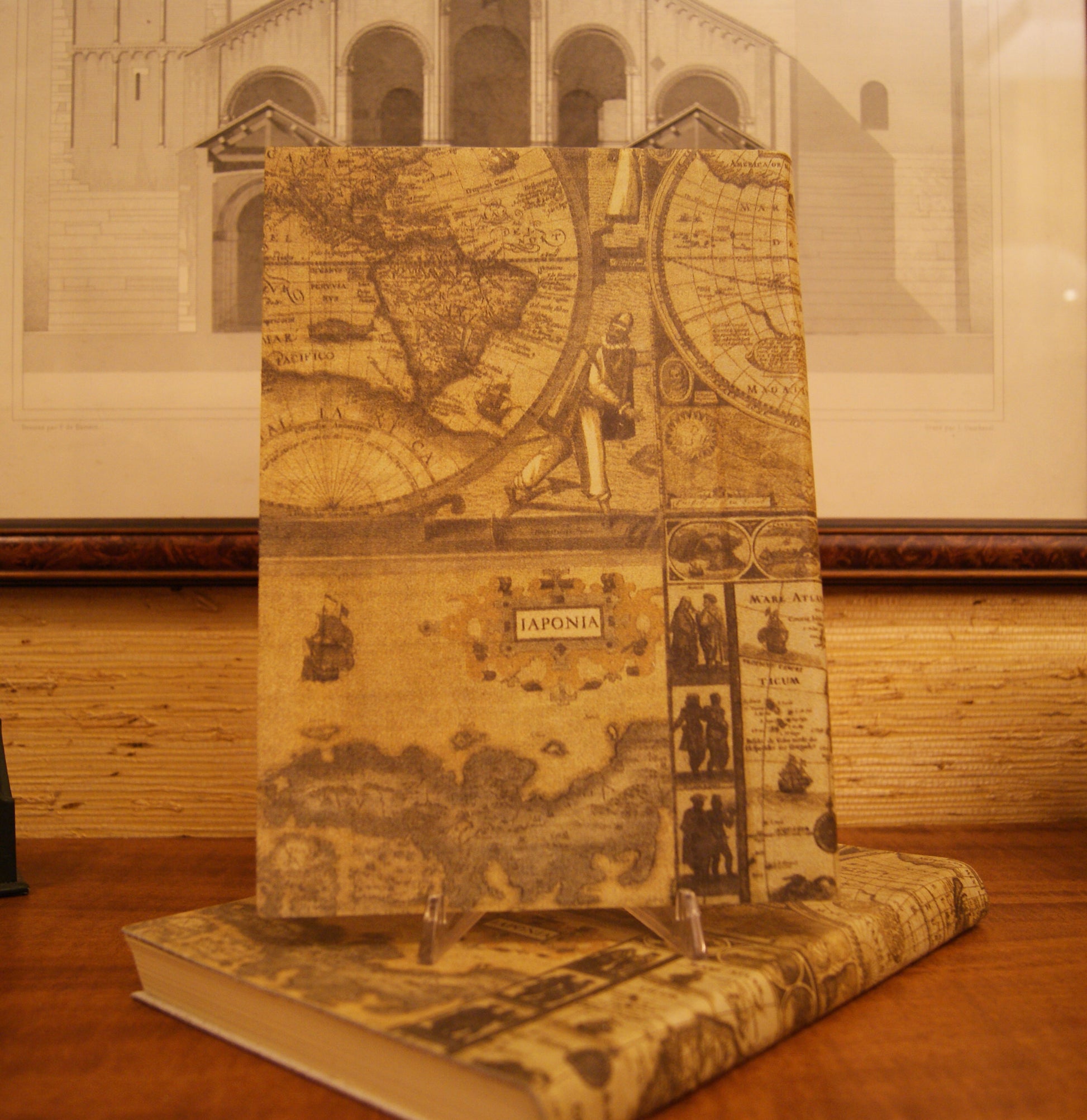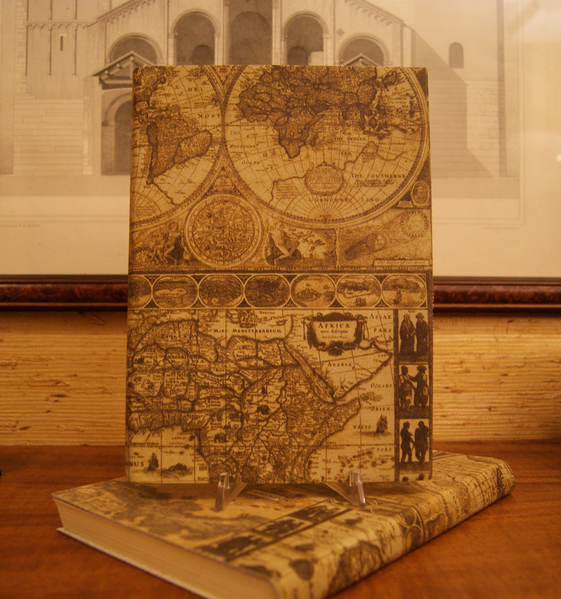 Copertina in pelle italiana stampata, fantasia geografica.