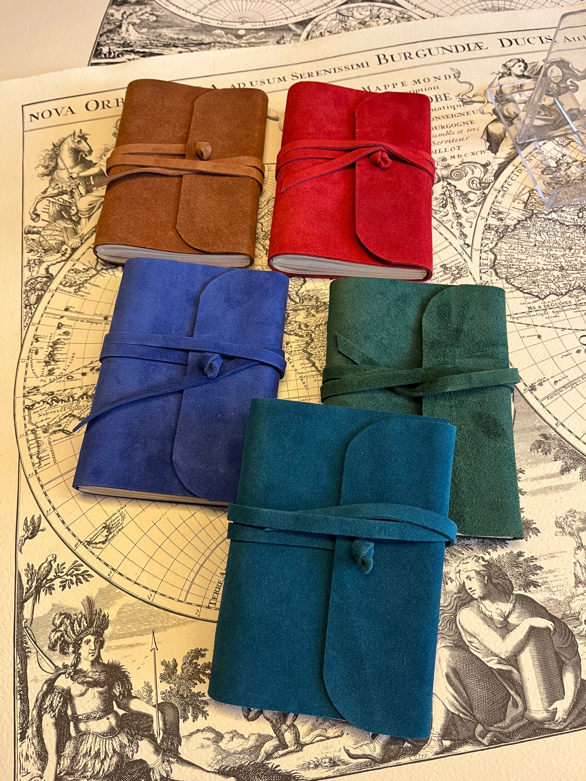 Quaderno 90 pagine bianche, copertina in pelle morbida scamosciata - 11 x 15 cm
